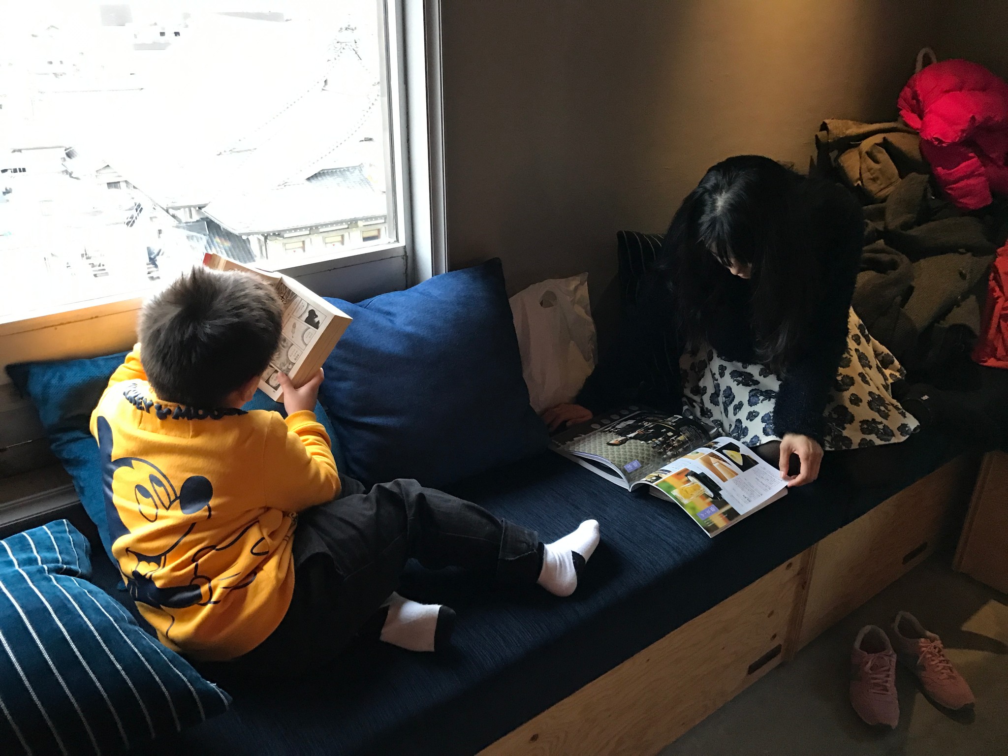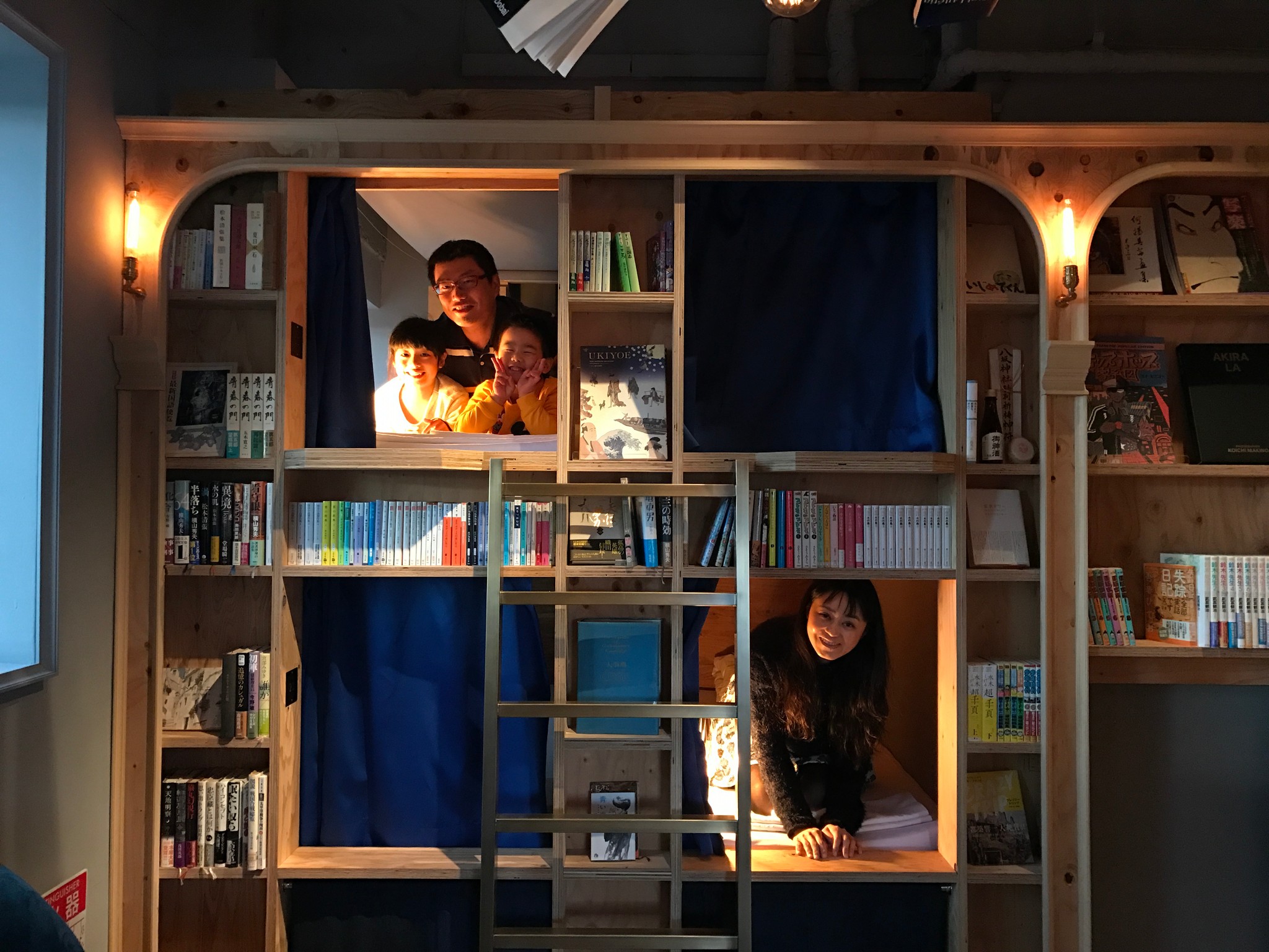 自從物產公司 R-STORE 於 2015 年 11 月在東京池袋開設第一家「BOOK AND BED TOKYO」以來話題不斷,國內外媒體爭相報導,大家對於睡在書店感覺的 hostel 相當好奇,造成一床難求的特殊景象。R-STORE 趁著這股風潮一口氣在 2016 年 12 月 2 日於京都開設第二家分店「BOOK AND BED TOKYO - KYOTO」(超饒舌)以及 2017 年 4 月 29 日於福岡開設第三家分店「BOOK AND BED TOKYO - FUKUOKA」,看似床位問題稍微紓解,但對於帶小人旅遊的我們仍是遙不可及。原先還打算拋家棄子獨自一人去嘗試一晚,上官網查詢發現他們在 13:00~17:00 有推出『純休息看書』的日間方案,一小時 500 隻羊、不限時間 1500 隻羊(稅金另計),大人小人同價,但不可進入床鋪。想著我們只是去拍照看書的份上,決定只去一小時。